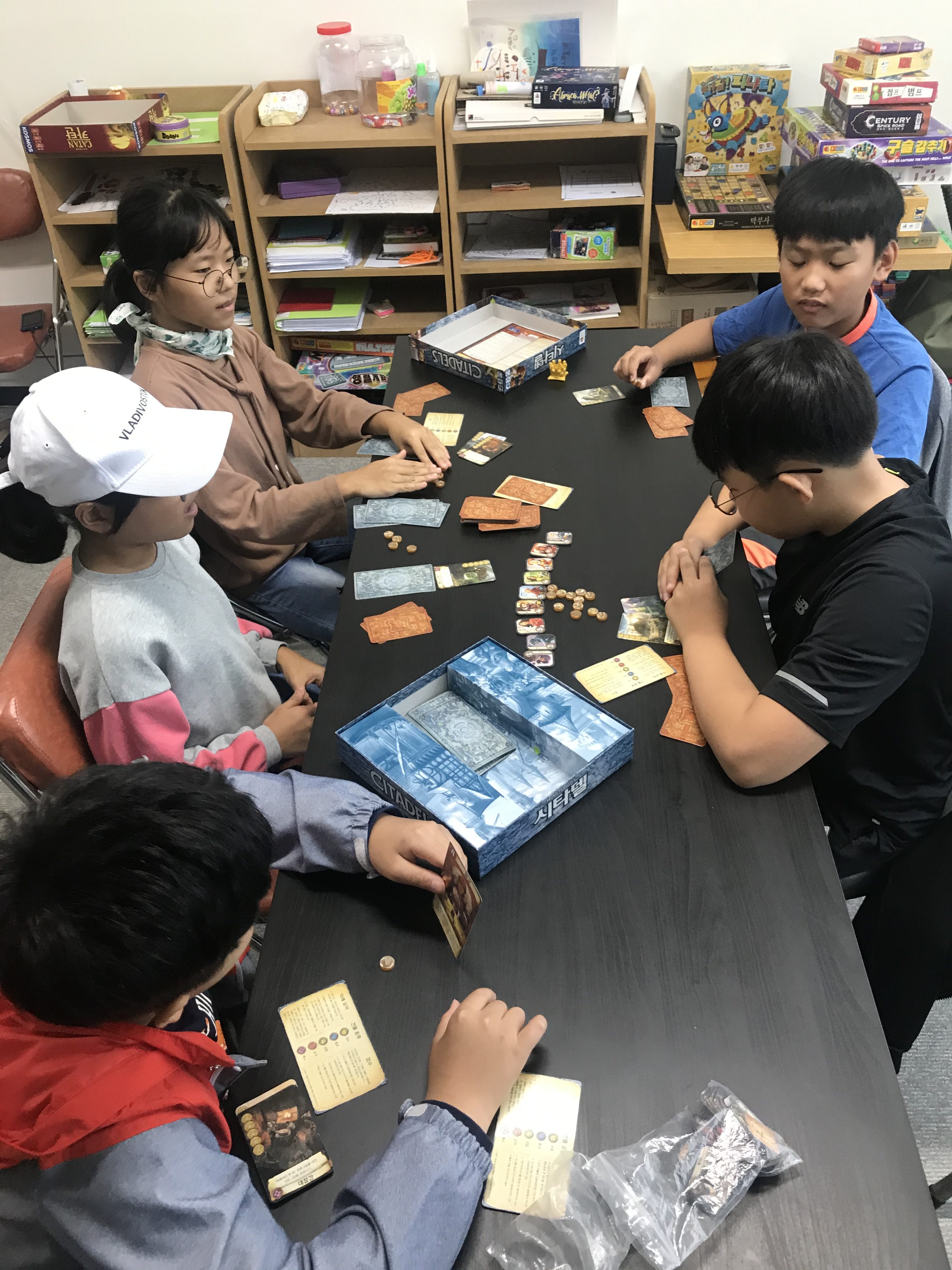이번주는 전략 보드게임 카탄, 아브라카왓, 시타델 보드게임을 아이들이 직접 게임에 참여하였습니다.